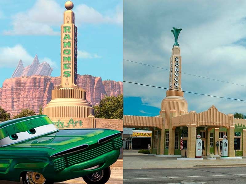 Radiator Springs está inspirado en numerosos lugares de la ruta 66 encontrados por los trabajadores de Pixar, pero este se basa directamente en U-Drop Inn.