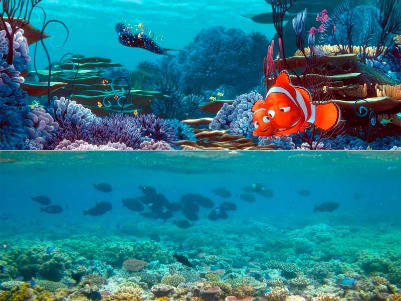 Seguro que ya has reconocido la Gran Barrera de Coral en la película de Nemo y Marlin.