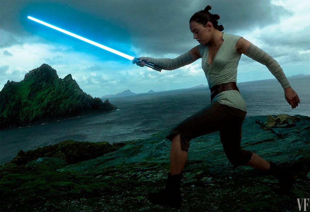 Rey (Daisy Ridley) demuestra su habilidad con el sable láser gracias al uso de La Fuerza.