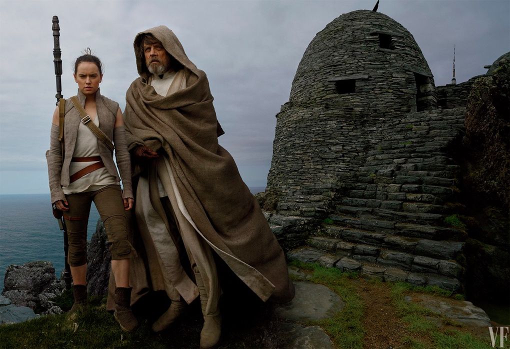 Daisy Ridley y Mark Hamill posan como Rey y Luke Skywalker durante el rodaje de Star Wars: Los últimos Jedi en Irlanda.