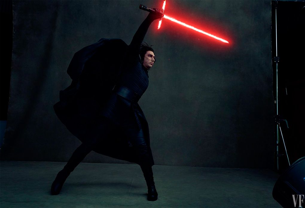 Adam Driver vuelve a ser Kylo Ren, hijo y asesino de Han Solo, y aquí también alardea de sable.