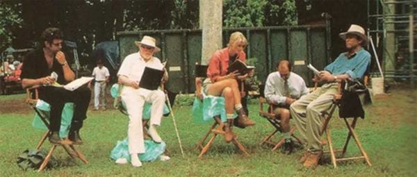 Spielberg conversando con Sam Neill