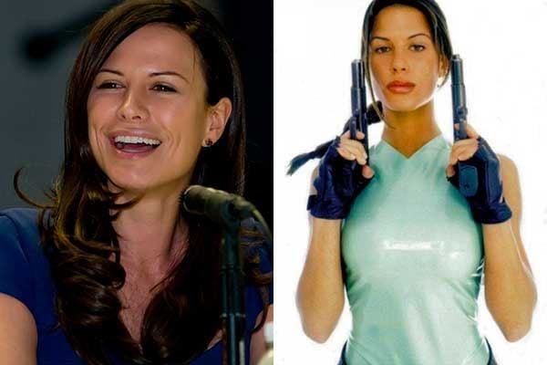 Rhona Mitra se convierte en una de las primeras modelos de Lara Croft en 1997 cuando a la heroína se la representaba centrándose en sus atributos femeninos y no tanto en sus capacidades como exploradora.