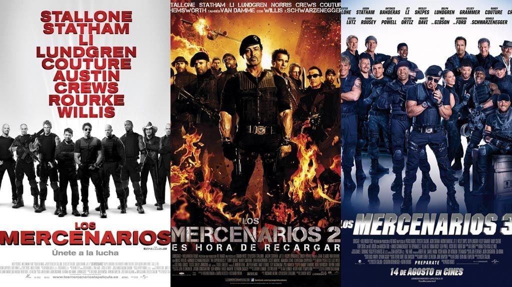 Tres son los títulos que forman, hasta el momento, la franquicia Los mercenarios protagonizada también por Sylvester Stallone. En su corta vida, desde 2010, la saga ha recaudado más de 804 millones de dólares a nivel mundial.