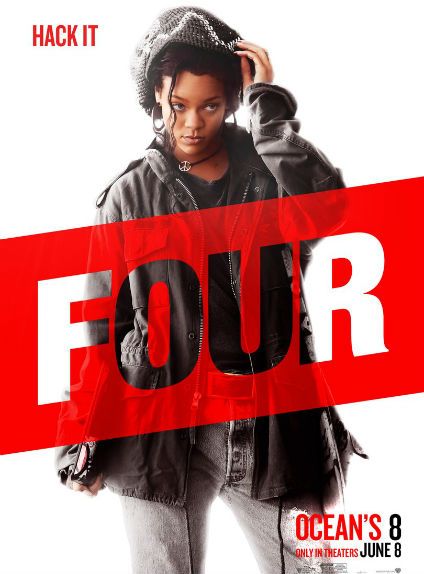 El 6 de julio llega a los cines el 'reboot' de 'Ocean's Eleven' dirigido por Gary Ross. Warner Bros Pictures España Debbie Ocean Sandra Bullock es la hermana de Danny Ocean. Lou Cate Blanchett da vida a la mano derecha de Debbie. Daphne Kluger Anne Hathaway estará a cargo de un valioso collar. Nine Ball Rihanna será una de las reclutadas para efectuar el robo. Rose Helena Bonham Carter también participará en esta misión. Amita Mindy Kaling será reclutada por Debbie y Lou. Tammy Sarah Paulson interpreta a la séptima integrante de la banda. Constance Por último, Awkwafina cierra el elenco principal de Ocean's 8.