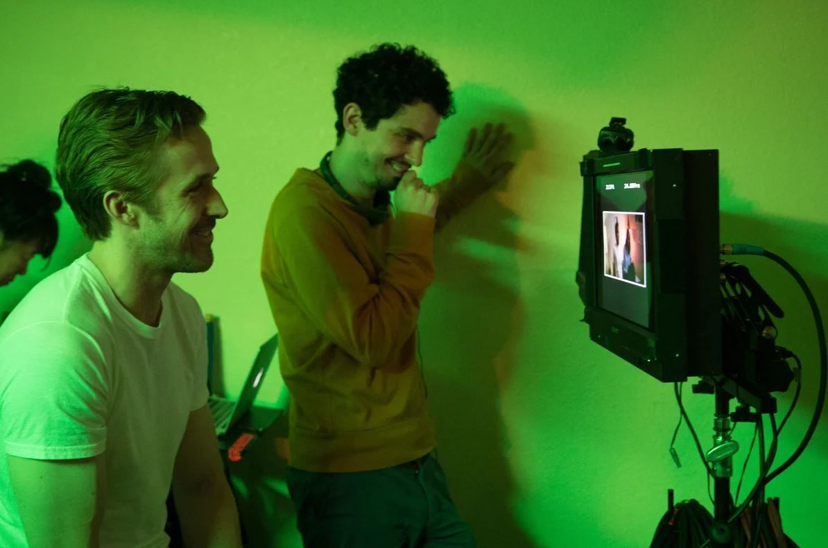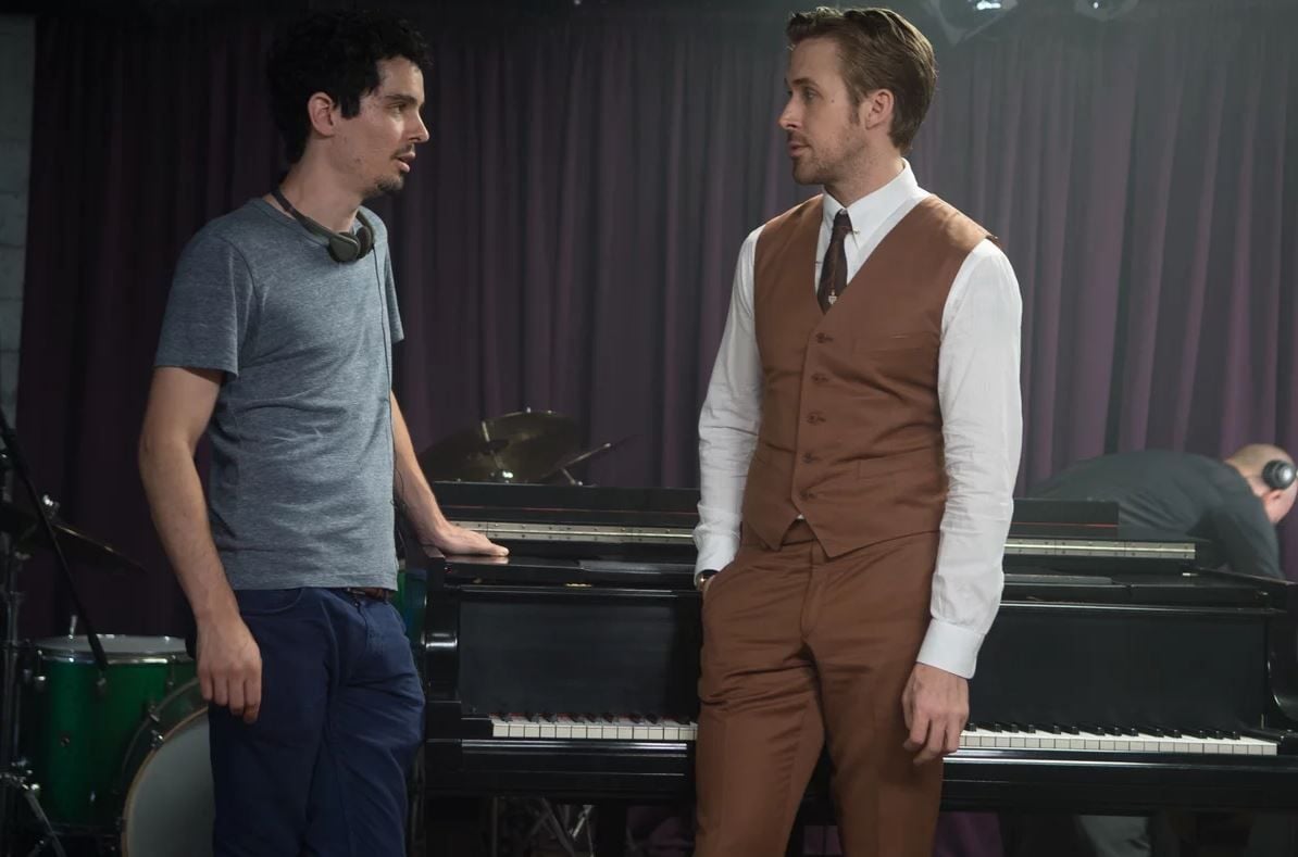 Ryan Gosling escuchando las indicaciones de Damien Chazelle.