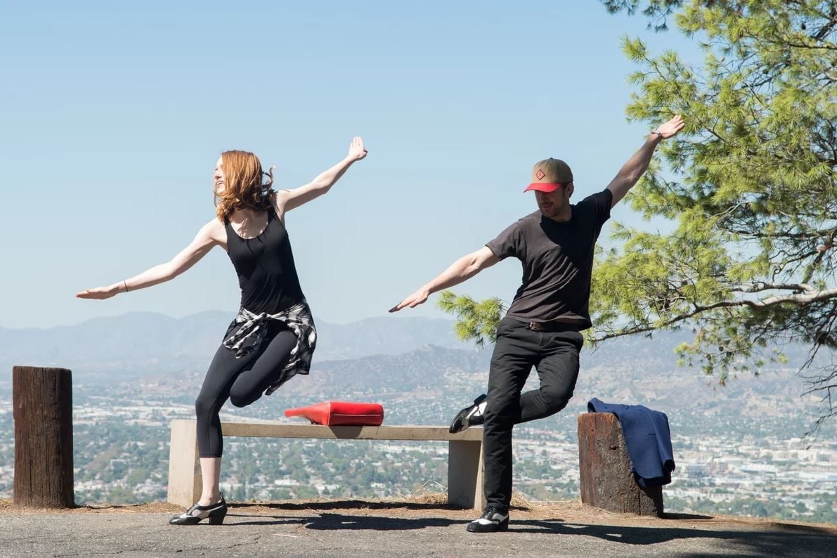 Damien Chazelle dirigiendo el ensayo del baile de 'Someone in the Crowd'.