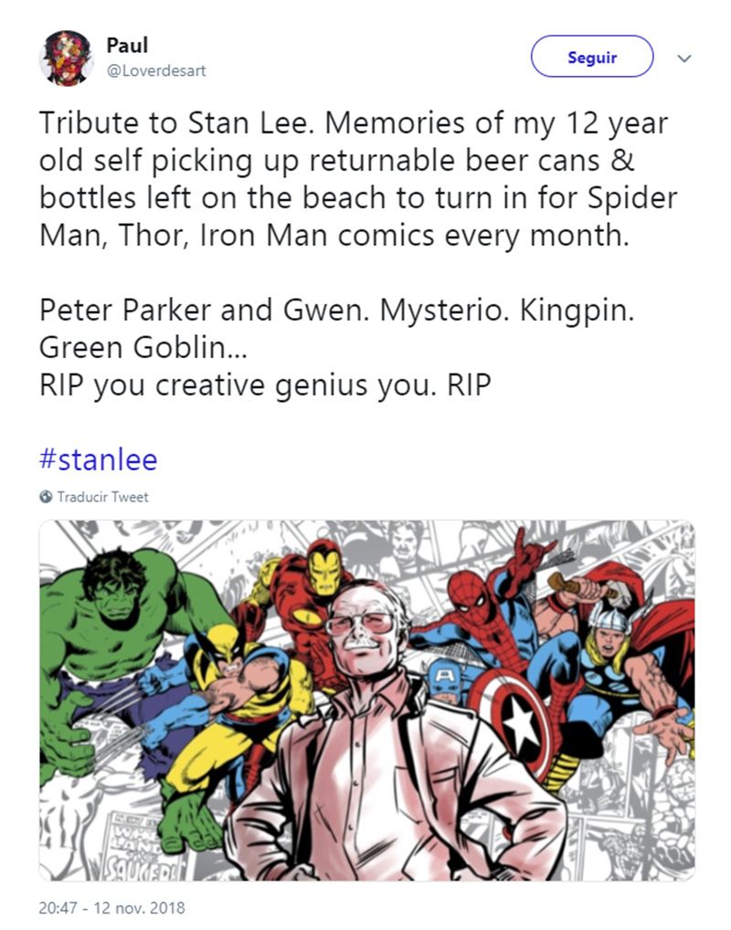 Este lunes ha fallecido Stan Lee a los 95 años. El creador de algunos de los personajes más relevantes de Marvel Cómics ha dicho adiós a todos los seguidores dejando una carrera profesional como pocas, plagada de sorpresas, grandes momentos, drama y polémica. Entre sus superhéroes más destacados se encuentran Capitán América, Cuatro fantásticos, Los Vengadores o Spider-Man.