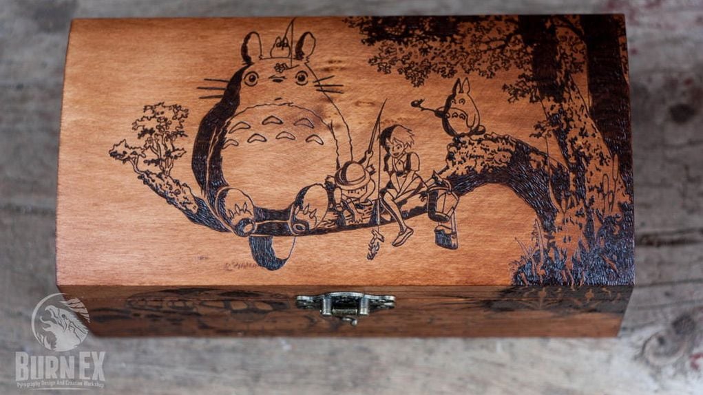 Guarda tus objetos más preciados, tus joyas o lo que tú prefieras en esta caja de madera personalizada, de calidad superior y hecha a mano, con un grabado de Mi vecino Totoro de Studio Ghibli. Bajo petición, incluso puedes solicitar una inscripción si no es demasiado larga. Cómprala por 81,93 euros.