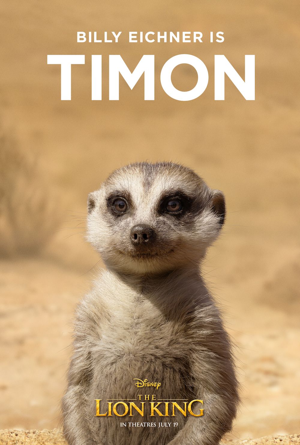 Sobre estas líneas encontrarás los impresionantes y coloridos carteles individuales de Simba de adulto (Donald Glover), Nala de adulta (Beyoncé Knowles-Carter), Mufasa (James Earl Jones), Scar (Chiwetel Ejiofor), Pumba (Seth Rogen), Timón (Billy Eichner), Sarabi (Alfre Woodard), Rafiki (John Kani), Nala de joven (Shahadi Wright Joseph), Simba de joven (JD McCrary) y Zazú (John Oliver).