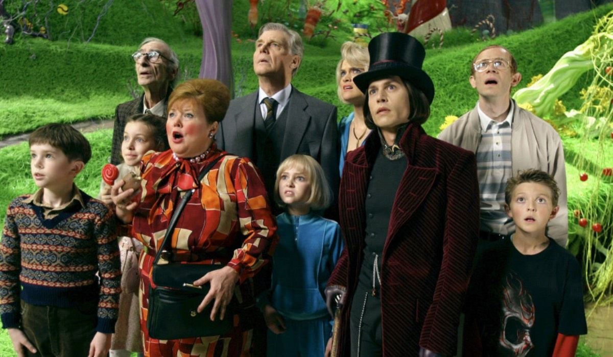 Charlie y la fábrica de chocolate (2005), basada en la novela infantil Charlie y la fábrica de chocolate.