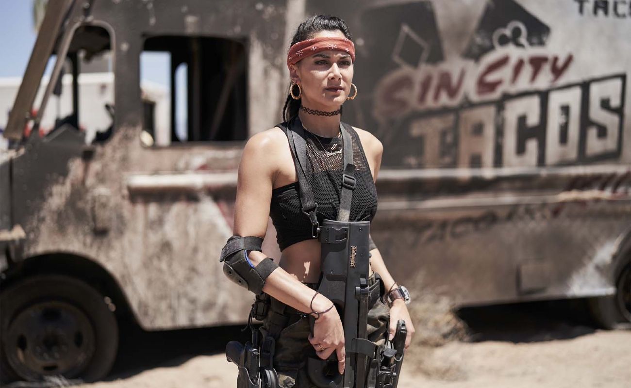 Ana de la Reguera es Maria Cruz, mecánica y la mano derecha de Scott Ward (Bautista). Ella combatió junto al protagonista en la guerra de Las Vegas y convirtió la gastroneta de tacos de Scott Ward en un tanque mata zombis.