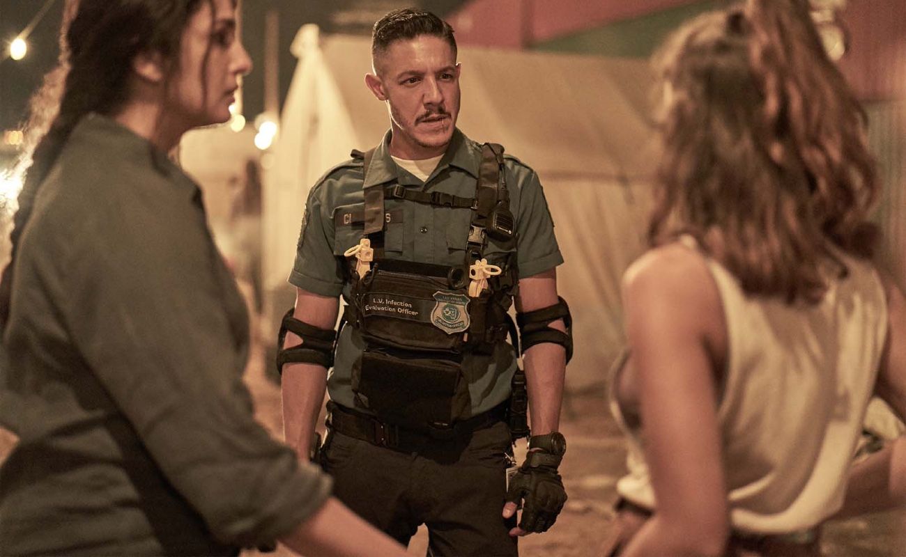 Theo Rossi es Burt Cummings, el cruel vigilante del Centro de Cuarentena. Se une al equipo de Scott Ward (Bautista) por consejo de La Coyote (Arnezeder).