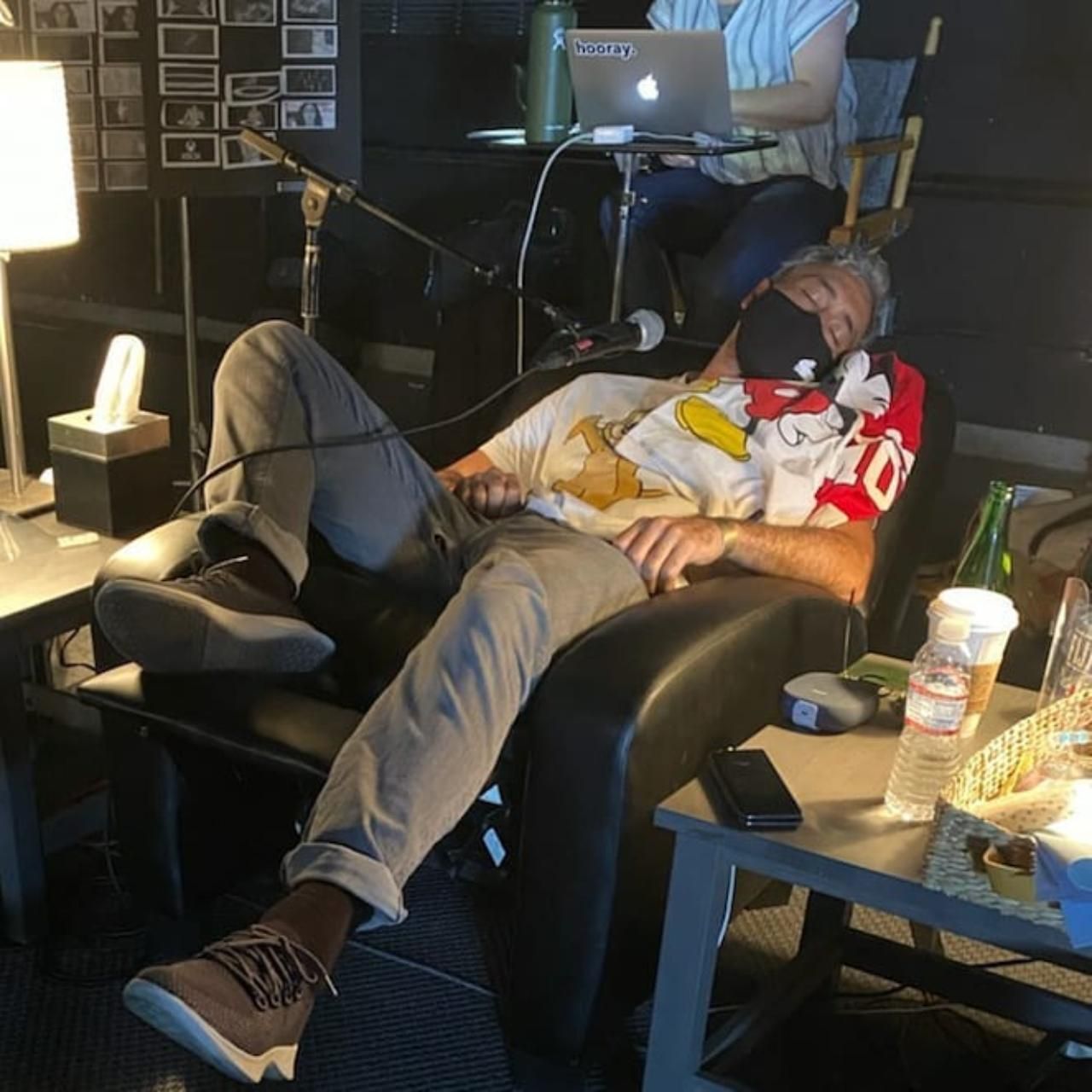 Dirigir la cuarta entrega de la saga Thor puede ser muy cansado y aquí está la prueba. Taika Waititi se quedó dormido en la butaca y Russell Crowe tuvo el detalle de colocarle la mascarilla.