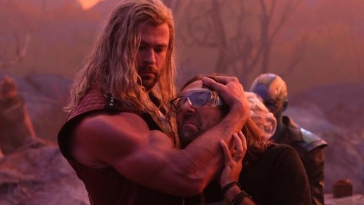 Durante los momentos iniciales de la cinta, Thor tiene el físico con el que le dejamos después de los sucesos de Infinity War. Parece que el actor disfrutó del cambio entre escena y escena.