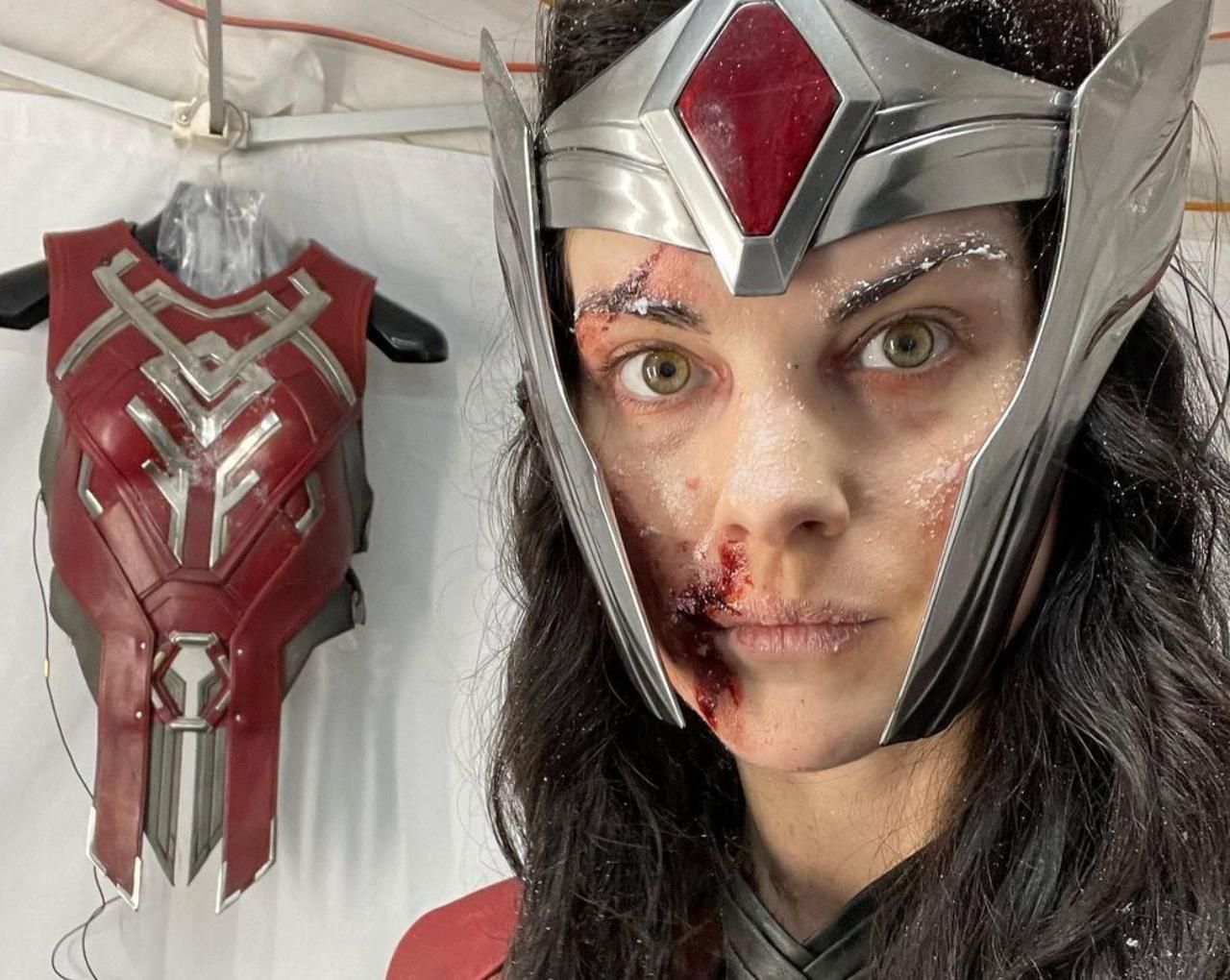 Jaimie Alexander compartió esta imagen de su regreso como Lady Sif, con el cuerpo lleno de nieve a punto de la congelación.