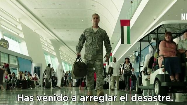 La película original de Netflix viene dirigida y escrita por David Michôd, cineasta inteligente y meticuloso –al menos así lo atestiguaba su potentísimo debut, Animal Kingdom (2010)–, que aquí se ha plegado dócilmente a los designios de Plan B y su capitán, adaptando en el marco de un guión asombrosamente problemático el libro The Operators, publicado en 2012. En él, el periodista de la Rolling Stone Michael Hastings estudiaba algunos de los más incómodos entresijos de la guerra de Afganistán en torno a la figura del general Stanley McChrystal, un excéntrico militar que fue apartado del servicio tras unas desafortunadas declaraciones en contra de las políticas de Obama, recogidas por el propio Hastings. McChrystal es también el protagonista de Máquina de Guerra, sólo que no se llama McChrystal sino Glen McMahon, y ésta es la coartada de la que se vale Brad Pitt para dar rienda suelta a todo su histrionismo, mezclando los tics marciales del Aldo Raine de Malditos bastardos (2009) con la ilimitada estulticia de su personaje en Quemar después de leer (2008).