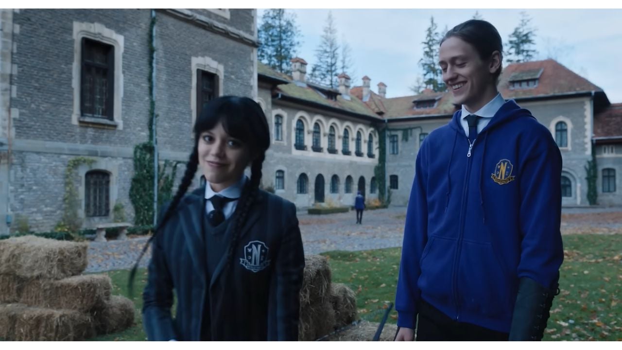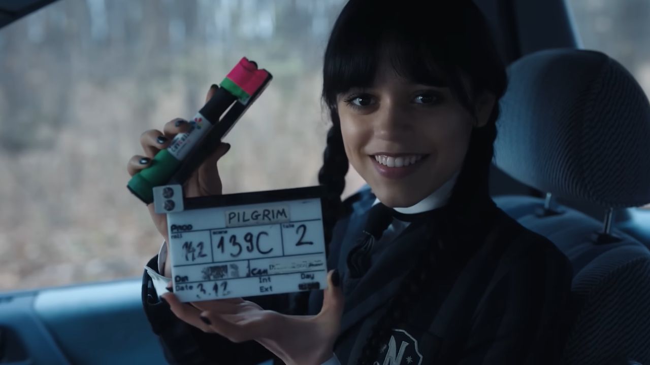 En este minuto y medio de tomas falsas que compartió Netflix podemos disfrutar de Jenna Ortega maldiciendo al séptimo avión que pasa por el cielo justo cuando ella está lista para grabar su escena o su preocupación al dar -sin querer- a su compañera Gwendoline Christie. Por supuesto, también hay una buena dosis de sonrisas y gestos de complicidad.