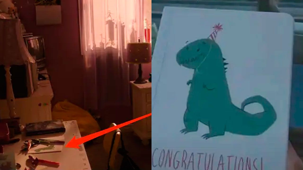 Al comienzo del episodio, podemos ver la tarjeta de cumpleaños de Sarah que quiere dar a su padre en su escritorio, uno de los objetos que se puede interactuar en el videojuego y donde se puede leer la dedicatoria y que dice así:
