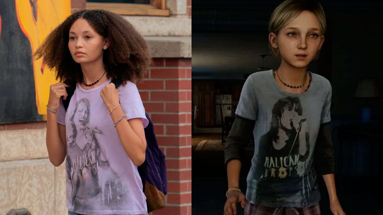 Un guiño fácil al juego. Sin embargo, al estar ambientada en 2003 en vez de 2013, el diseño de la camiseta de Sarah en la serie dice 2002 en lugar de 2012. Y en el frente de la camiseta, se puede ver a la artista en otra pose.