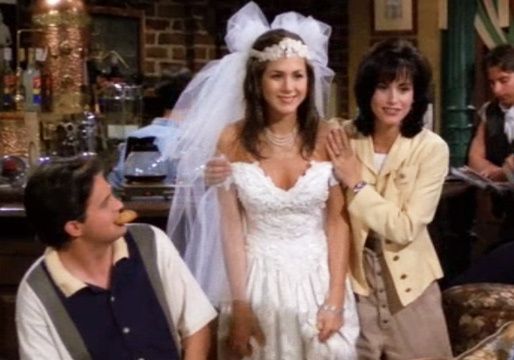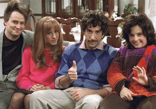 Chanler (Matthew Perry), Rachel (Jennifer Aniston), Ross y Monica.