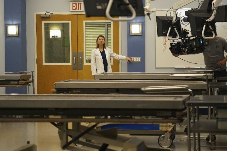 Ellen Pompeo como Meredith Grey en una imagen detrás de las cámaras.