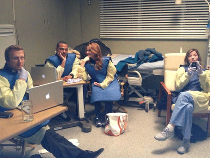 Entre toma y toma, lo mejor es mirar el móvil y enseñar las fotos del fin de semana
