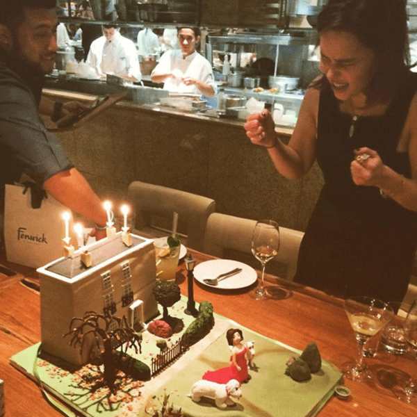 Clarke disfrutando de la mejor tarta en su cumpleaños