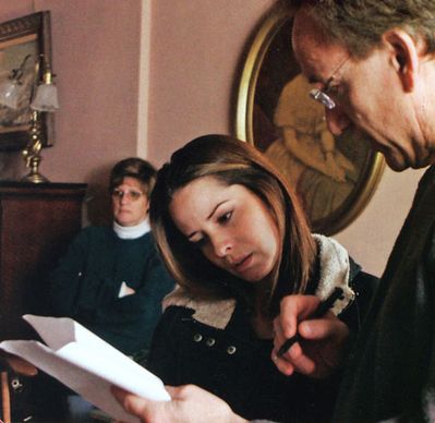 Piper (Holly Marie Combs) recibiendo órdenes entre toma y toma.