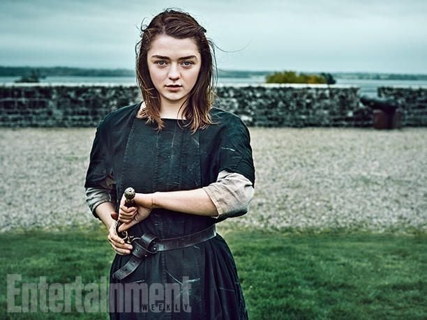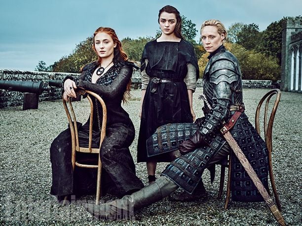 Las hermanas Stark, Arya y Sansa, junto a Brienne de Tarth.