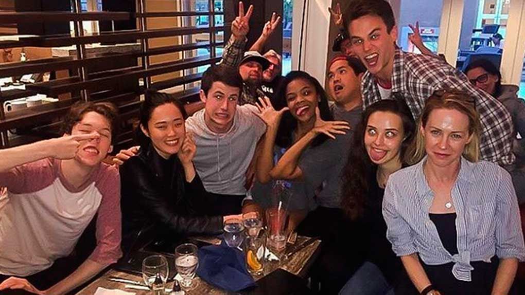 Dylan Minnette (Clay), Katherine Langford (Hannah), Christian Navarro (Tony), Tommy Dorfman (Ryan) y Selena Gomez (productora).