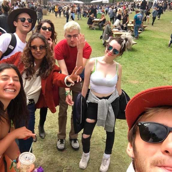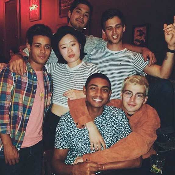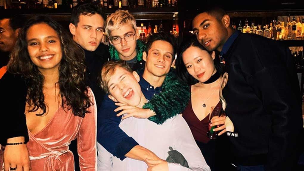 Alisha Boe (Jessica), Miles Heizer (Alex) y Brandon Flynn (Justin) con más amigos.