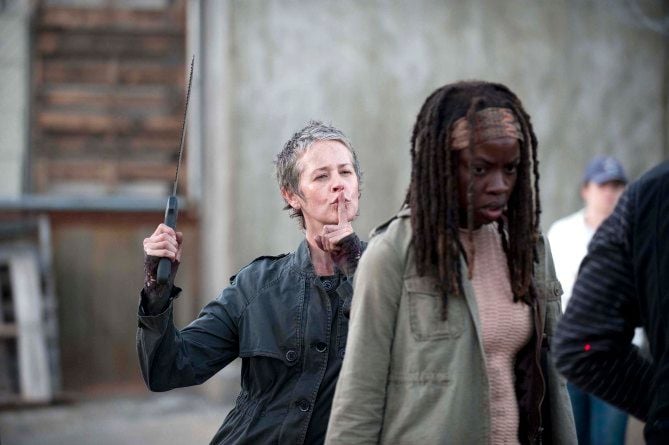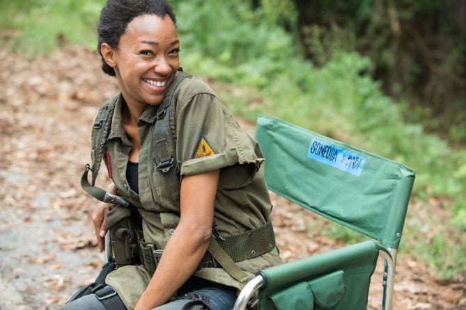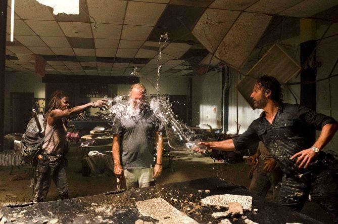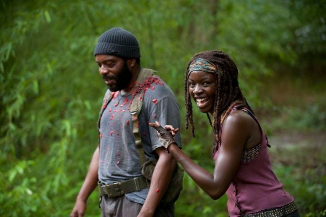 Danai Gurira y Chad Coleman bromean durante el rodaje.