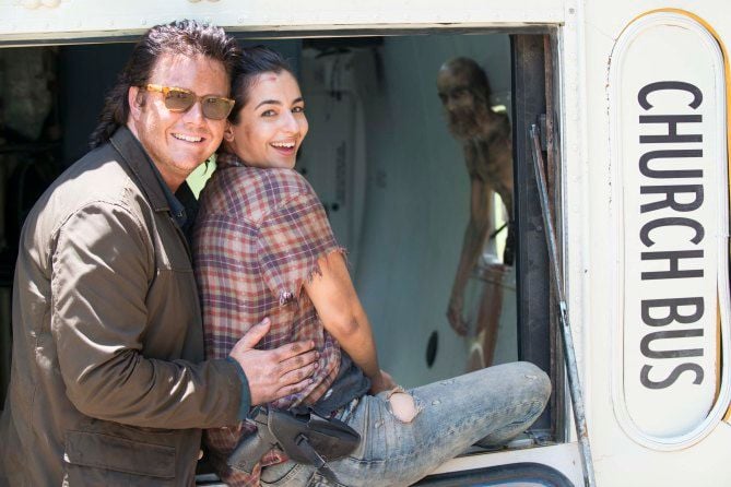 Famosa imagen de Greg Nicotero, también productor y director de la serie, caracterizado como un zombi.