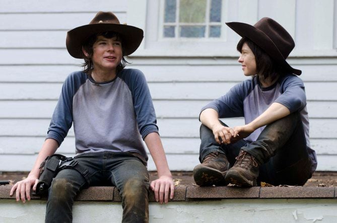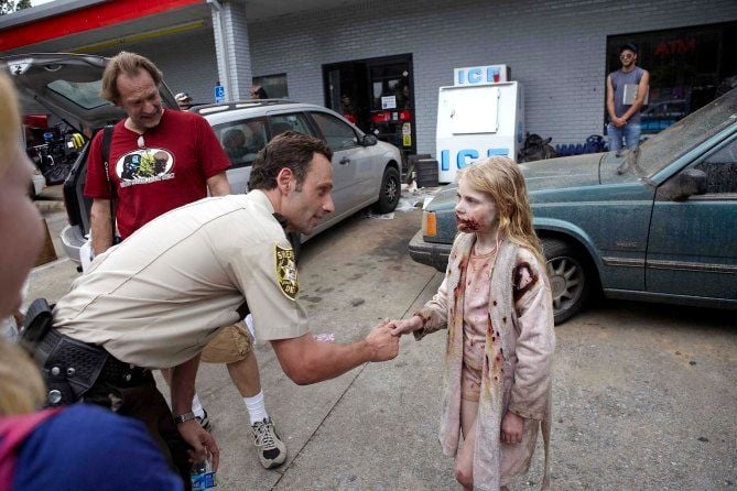 Rick Grimes junto a la icónica niña zombi de la primera temporada.
