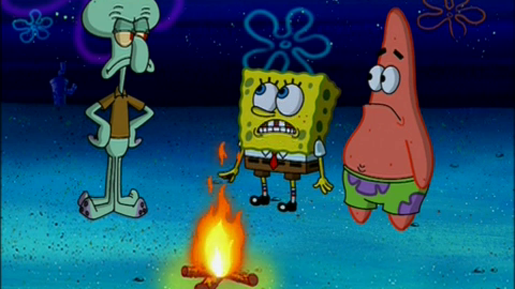 Y no es la única vez que hacen una hoguera o hay fuego en Fondo de Bikini