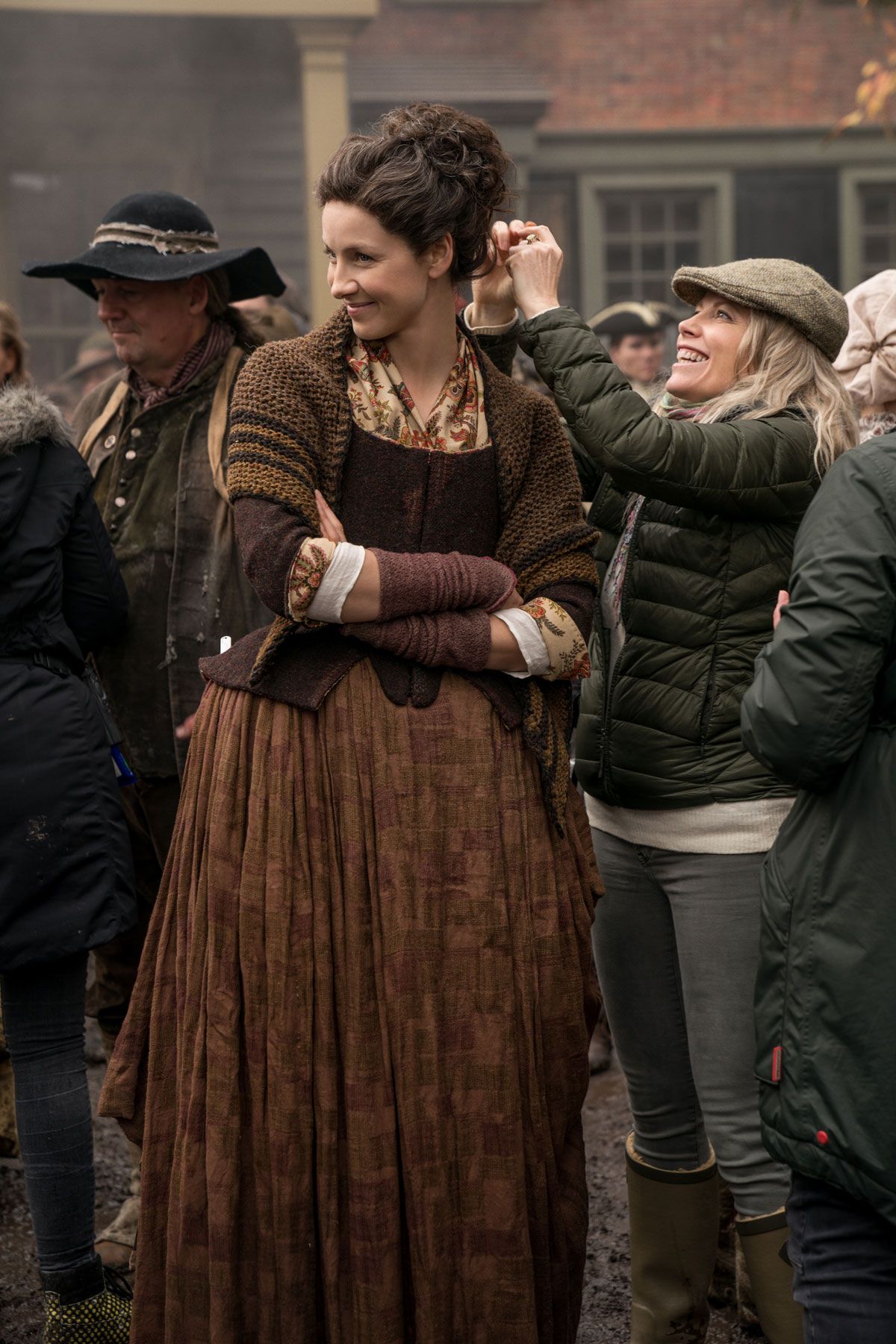 Aunque tenían que ir tejiendo cada traje para tanto protagonistas como figurantes, Desbach nos dijo que conseguían reutilizar los vestidos y los trajes de Escocia utilizados en anteriores temporadas para conseguir nueva ropa.