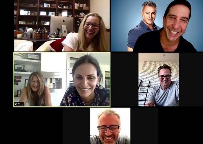 Los protagonistas de 'Friends' en una de las reuniones previas por Zoom.