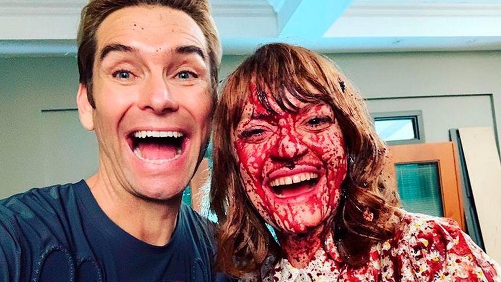 Poco importa que estos dos salgan de lo más sonrientes en la fotografía compartida por Antony Starr en su cuenta de Instagram. Entre que ella está aboslutamente llena de sangre y que tras el gestor divertido del actor neozelandés no podemos evitar percibir el creepy gesto psicópata de El Patriota, la fotografía se ha ganado su lugar entre las más turbias.