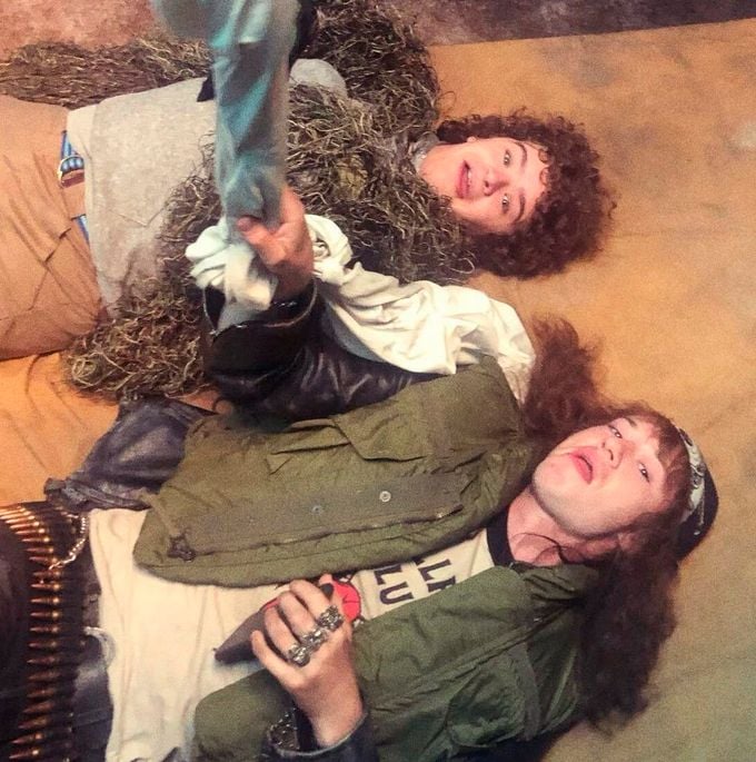 Max, Lucas y Dustin en un momento del rodaje de la temporada 4 en el que ya sabían que Max estaba en grave peligro, pero detrás de las cámaras todo eran sonrisas y diversión.