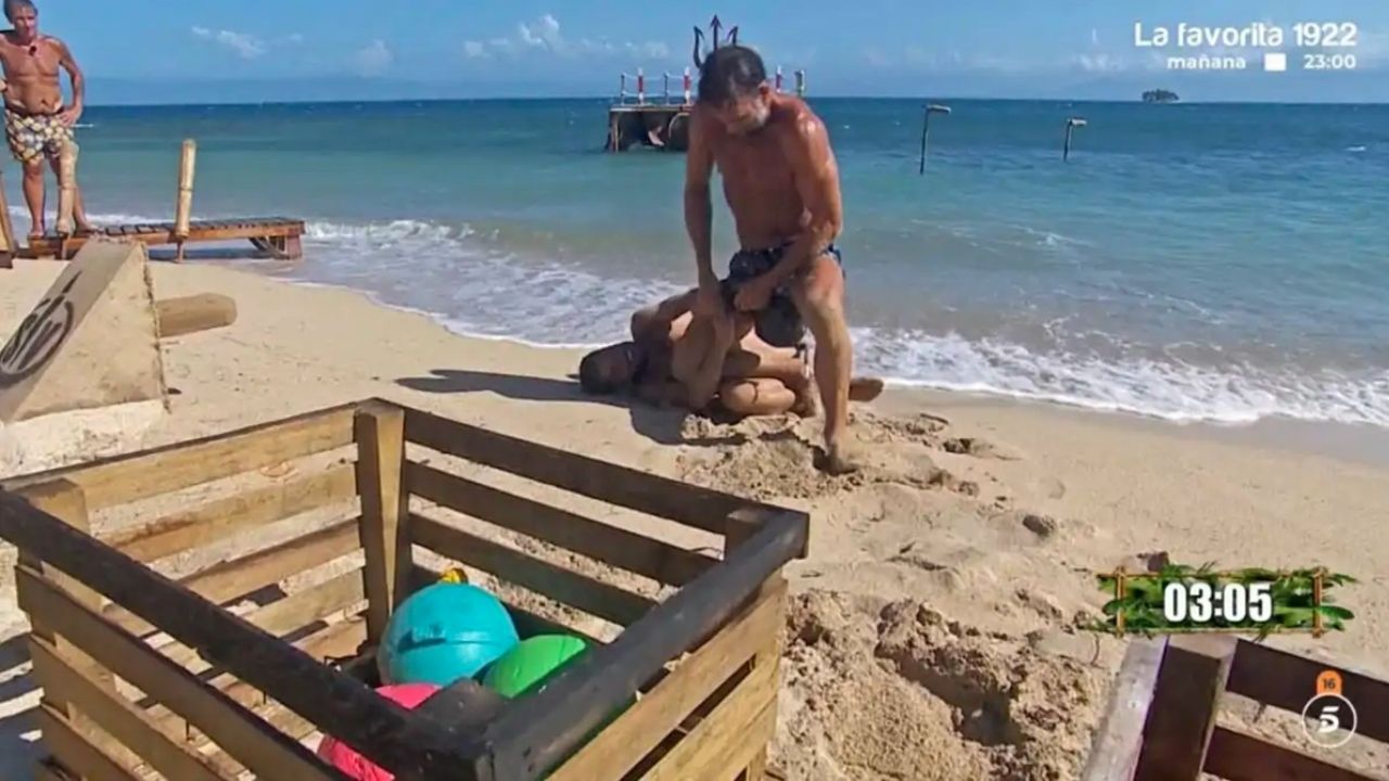 La prueba de recompensa consistía en tres juegos: robos, estrategias de memoria y rapidez eran las claves de los desafíos. En el primero, Laura Madrueño gritaba un color y los participantes debían ir a por ellos salir nadando para coger las boyas que flotaban en el mar. Un objeto para dos participantes por lo que tenían que robárselo entre ellos. Y ahí es dónde surgió el tenso momento.