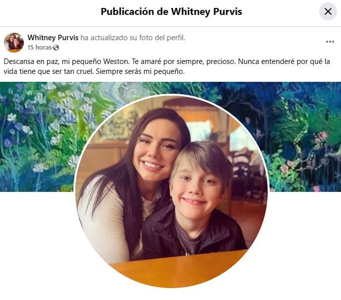 Ahora se ha sabido que Weston ha fallecido a los 16 años. Whitney ha sido la encargada de comunicarlo a través de su página de Facebook. "Descansa en paz, mi pequeño Weston. Te amaré por siempre, precioso. Nunca entenderé por qué la vida tiene que ser tan cruel. Siempre serás mi pequeño", ha escrito en la publicación.