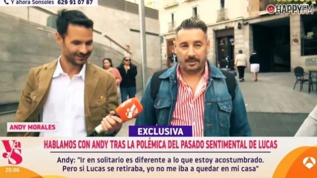 Ahora, por fin, Andy ha roto su silencio en televisión para hablar sobre el escándalo con Lucas González, su compañero hasta hace unos días en el dúo musical. Este miércoles 22 de octubre Y ahora Sonsoles habló brevemente con el cantante mientras éste caminaba por la calle. El gaditano, que se mantiene al margen del triangulo amoroso de su excompañero, prefiere no hacer declaraciones sobre el fin del dúo, ya que se encuentra inmerso en su próximo disco.