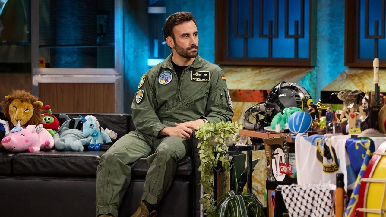 La Revuelta recibió a Juan Bengoechea, comandante y piloto de caza del Ejército del Aire y del Espacio. "Un rango alto del ejército, de las gloriosas fuerzas armadas del país, que ahora están especialmente de actualidad", afirmó el presentador. A lo largo de sus 10 años de experiencia, el invitado había completado varios desafíos: liderado en el mes de octubre la primera misión combinada del Ocean Sky 25, con más 40 aeronaves de seis países, además de diversas misiones de defensa aérea de la OTAN.