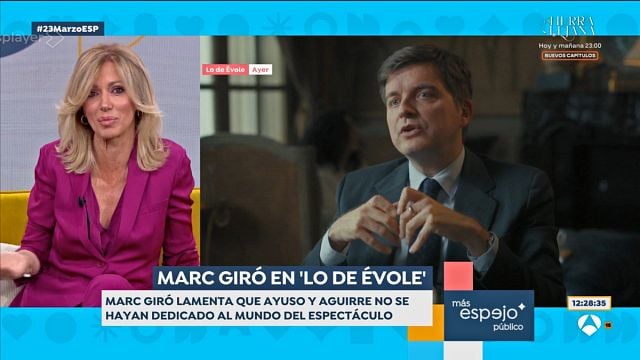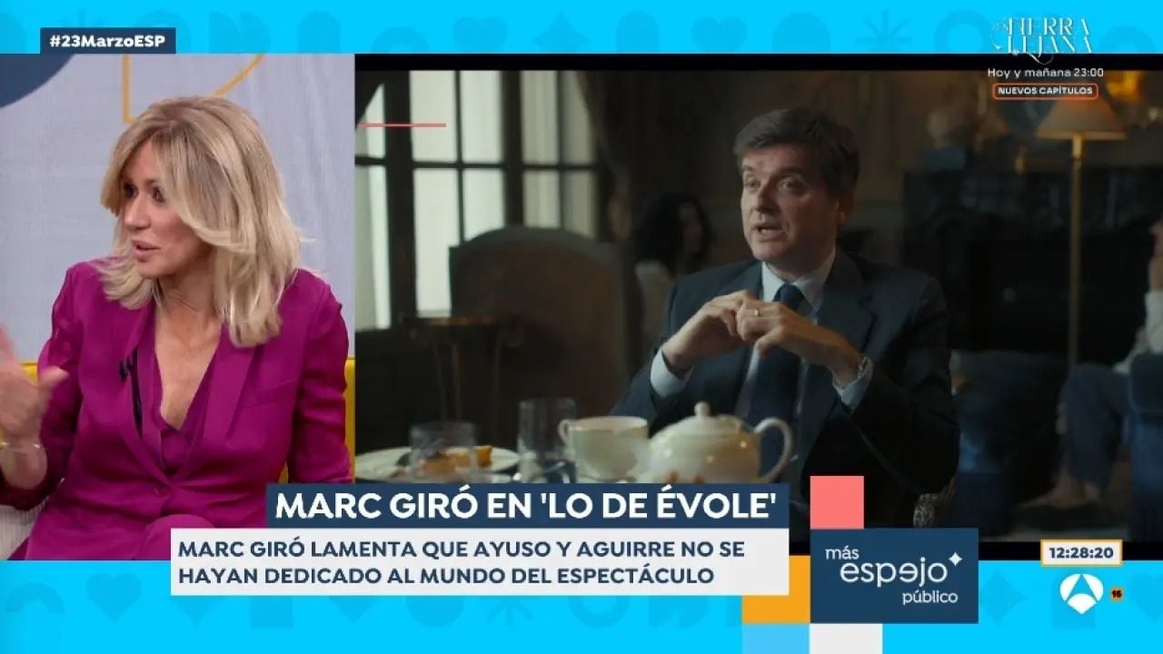 Sin embargo, Espejo Público se ha parado en unas declaraciones de Marc Giró a Jordi Évole que no han sentado nada bien a Susanna Griso. "Con Esperanza Aguirre me pasa lo mismo que con Isabel Díaz Ayuso. Me parece que hemos perdido grandes presentadoras de magazine de mañana, creo que serían más felices dedicándose al mundo del espectáculo y no al de la política", afirmó el catalán.