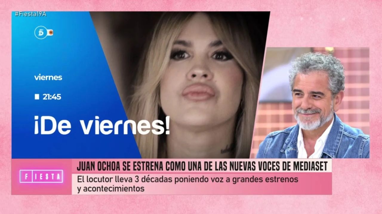 Mediaset sigue con cambios para intentar levantar las audiencias. Uno de los más significativos de los últimos meses es la nueva estética sonora de la cadena privada. Desde el pasado mes de marzo, Juan Ochoa es la voz en off de Telecinco por lo que este domingo, 19 de abril, acudió al plató de Fiesta para hablar de su nueva etapa profesional.